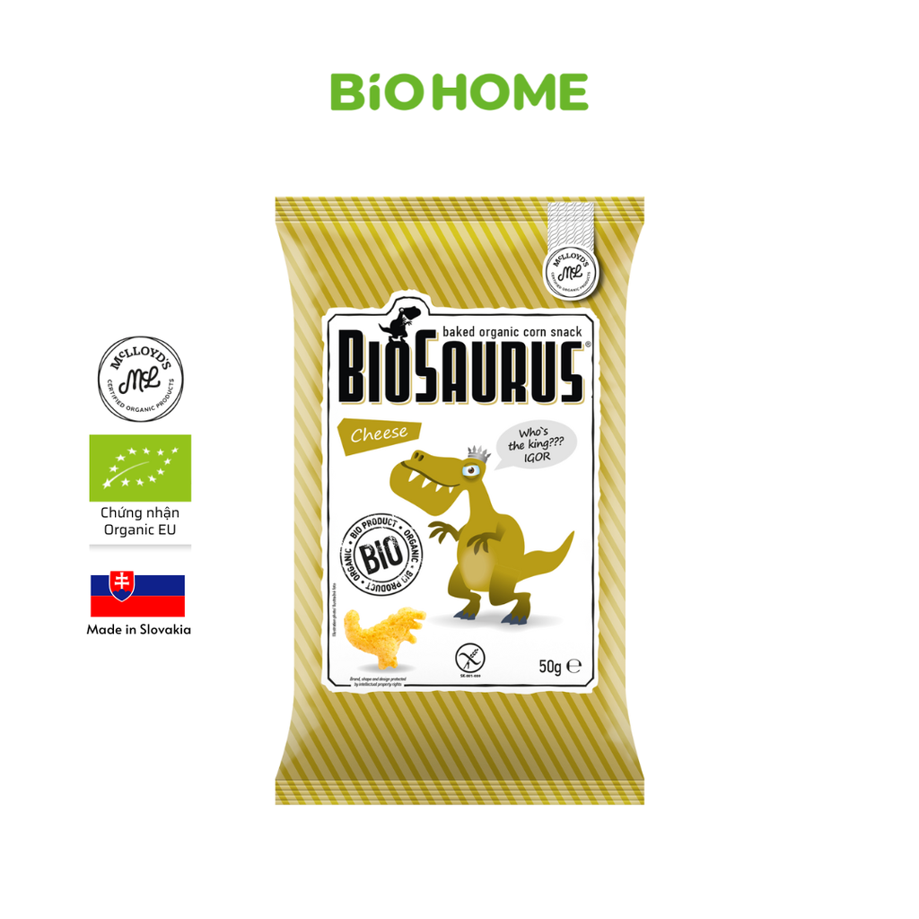 Bánh Snack - Bim bim hữu cơ vị phô mai Biosaurus (15g và 50g) – snack ngô nướng giòn tan, vị phô mai cheddar béo ngậy, đạt chuẩn EU Organic, an toàn cho bé từ 1 tuổi và cả gia đình.