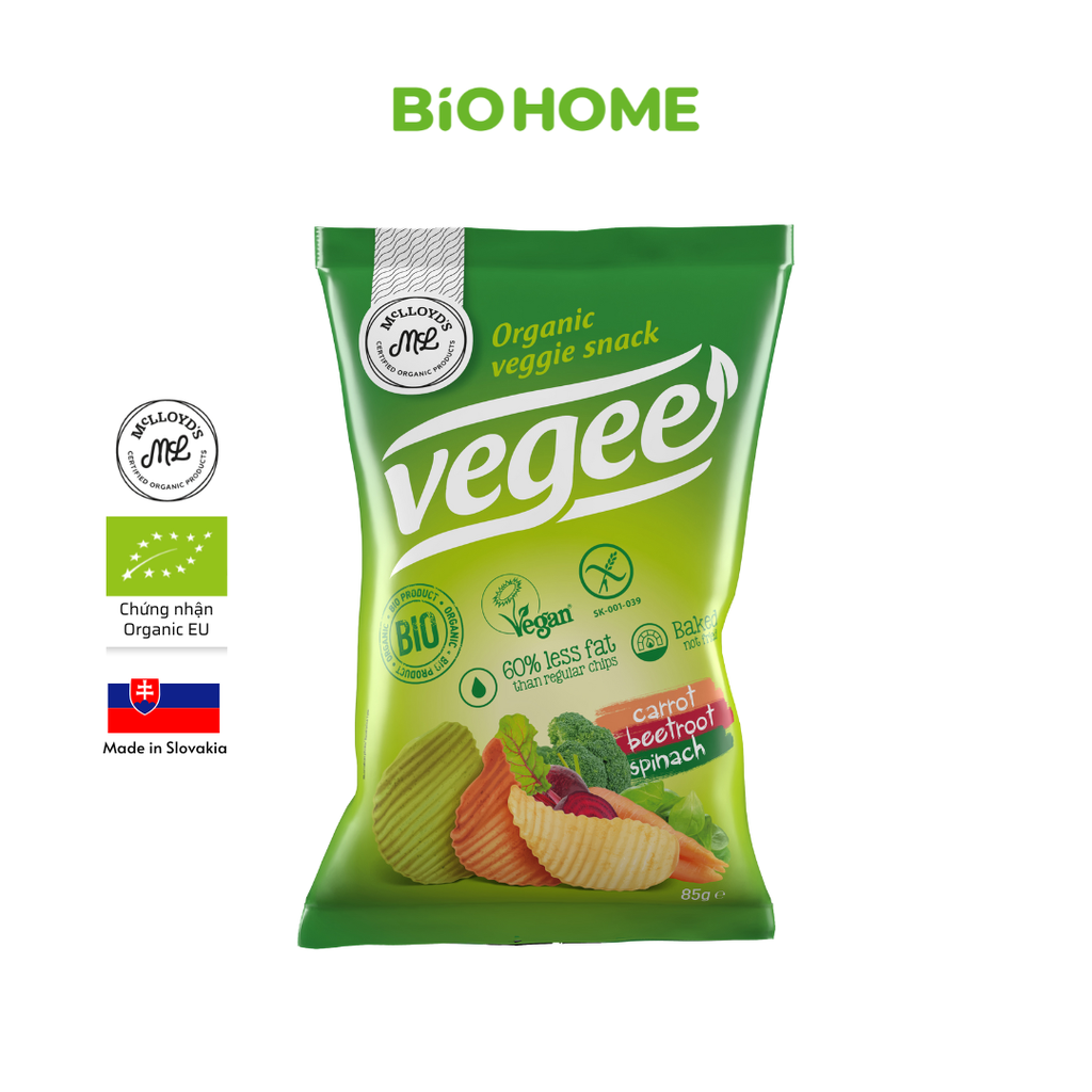 Bánh Snack - Bim bim hữu cơ rau củ Vegee (25g & 85g) – snack nướng giòn tan từ rau củ organic, ít béo hơn 60% so với snack khoai tây chiên, thuần chay 100%, đạt chuẩn EU Organic. Lựa chọn hoàn hảo cho trẻ em và cả gia đình yêu thích ăn vặt healthy.