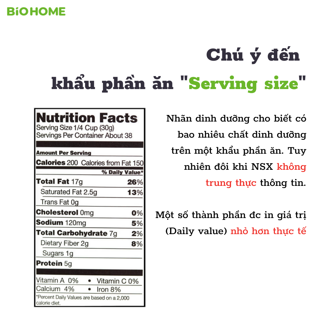 “Serving size” - Khẩu phần ăn là mục không thể bỏ qua đối với chị em yêu hữu cơ