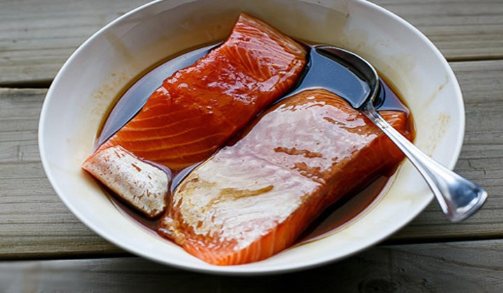 Cá và nước tương teriyaki hữu cơ kết hợp trong món ăn
