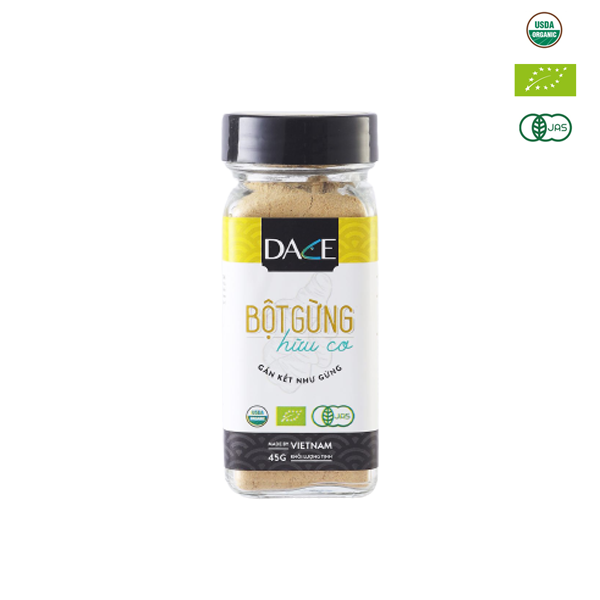 Bột gừng hữu cơ Dace (45g) được làm từ gừng dé tại miền núi phía Bắc, nuôi trồng và thu hoạch theo phương thức hữu cơ. Sản phẩm có hương vị thơm cay, nồng ấm riêng của sản phẩm.