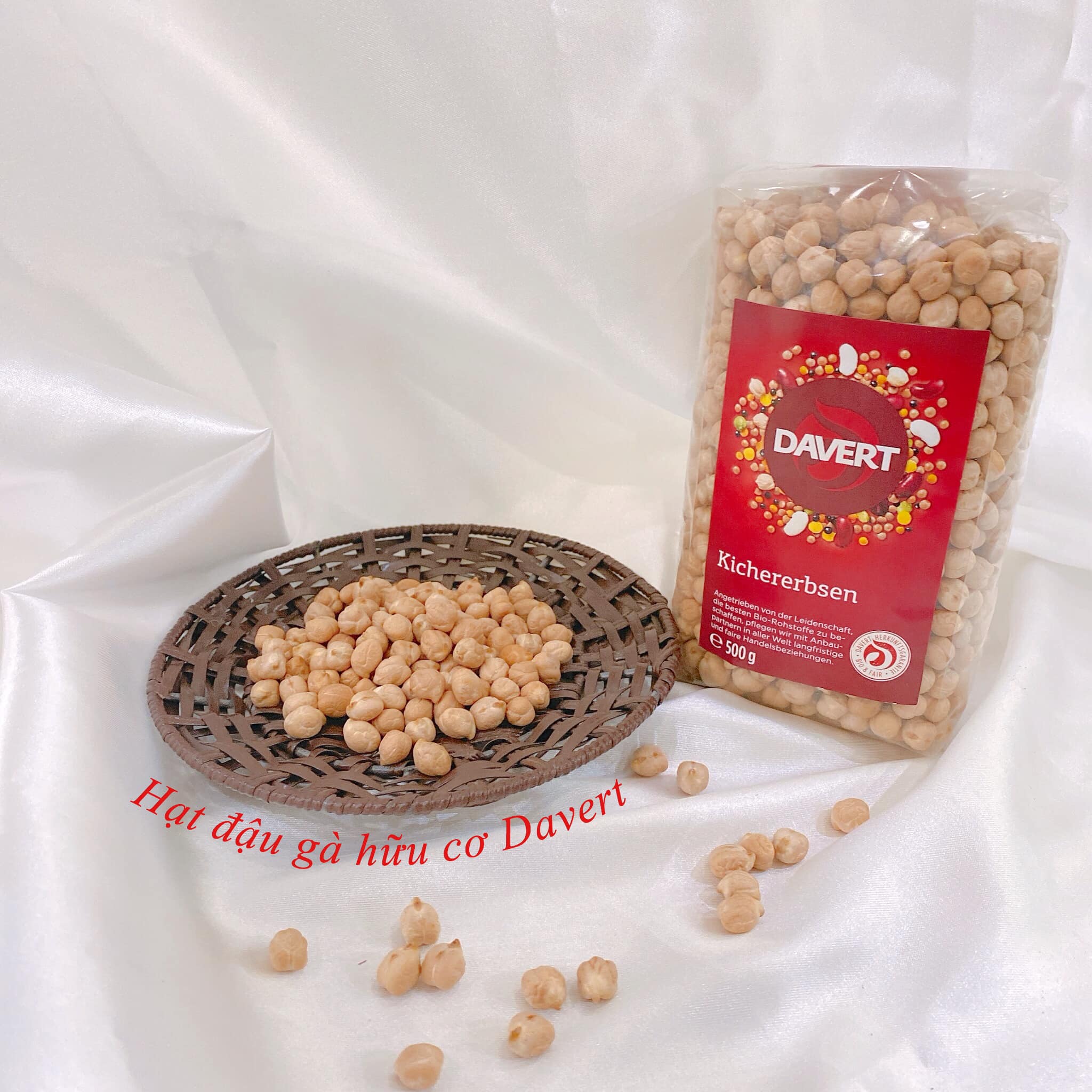 Dinh dưỡng và công dụng: Đậu gà hữu cơ Davert có nhiều thành phần dinh dưỡng như protein, sắt, vitamin , chất béo... Đặc biệt chúng chứa chất xơ và đạm nhiều hơn các loại đậu cùng họ hàng. Ngoài tác dụng lợi sữa và hỗ trợ tiêu hóa đậu gà còn giúp xương chắc khỏe, phòng ngừa thiếu máu và chống lão hóa rất tốt.