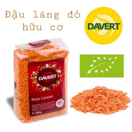 Dinh dưỡng và công dụng: Đậu lăng đỏ hữu cơ Davert chứa nhiều chất xơ, sắt, protein…đặc biệt cung cấp nguồn Vitamin B phức tạp như folic acid hoặc folate. Folate trong đậu lăng giúp tạo tế bào hồng cầu, tốt với phụ nữ mang thai và cho con bú