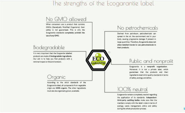 + Tính an toàn: các sản phẩm Ecogarantie phải tuân thủ các quy định của Bỉ và châu Âu về an toàn sản phẩm, nguồn gốc rõ ràng.