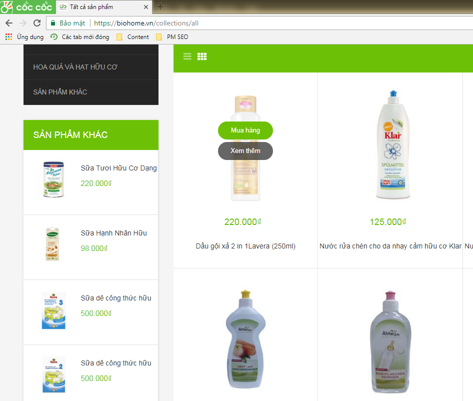 Bước 1: Truy cập website https://biohome.vn/ và lựa chọn sản phẩm cần mua để mua hàng. Bạn có thể lựa chọn theo sản phẩm hiện ra trên web, tìm kiếm sản phẩm theo tên hoặc theo danh mục sản phẩm.