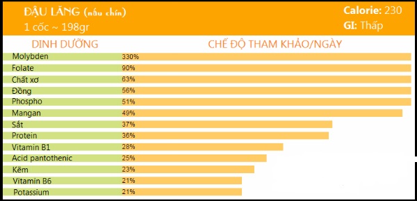Đậu lăng chứa nhiều chất dinh dưỡng, chất xơ và hàm lượng carbohydrat thấp, thời gian bảo quản lâu. Có thể dùng làm nguyên liệu để nấu nhiều món ăn như súp, hầm xương, nấu chè, trộn salad và nhiều món ăn khác.