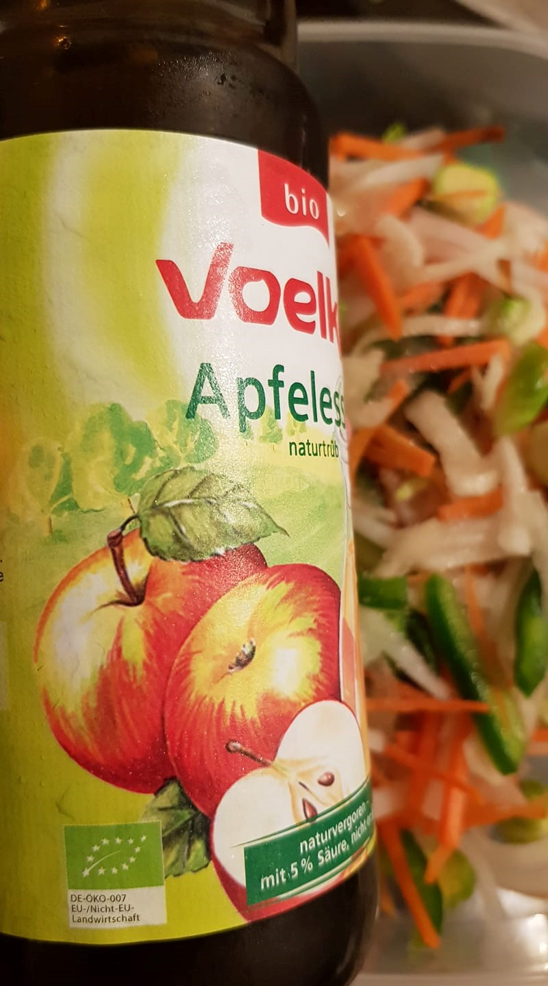 - Làm món gỏi – dưa góp siêu nhanh với giấm táo. Trên mâm cơm thường ngày hay mâm cơm cúng đều thường có món dưa góp, một món ăn không thể thiếu giúp cho mâm cơm đa dạng màu sắc và hương vị. Và sử dụng để làm các món gỏi, rau củ muối sổi, món ăn sẽ được chuẩn bị rất nhanh chóng, ngon miệng, màu sắc tươi đẹp bắt mắt và còn tốt cho tiêu hóa. Nhớ là lựa chọn loại giấm táo hữu cơ và có chứa giấm cái nhé.