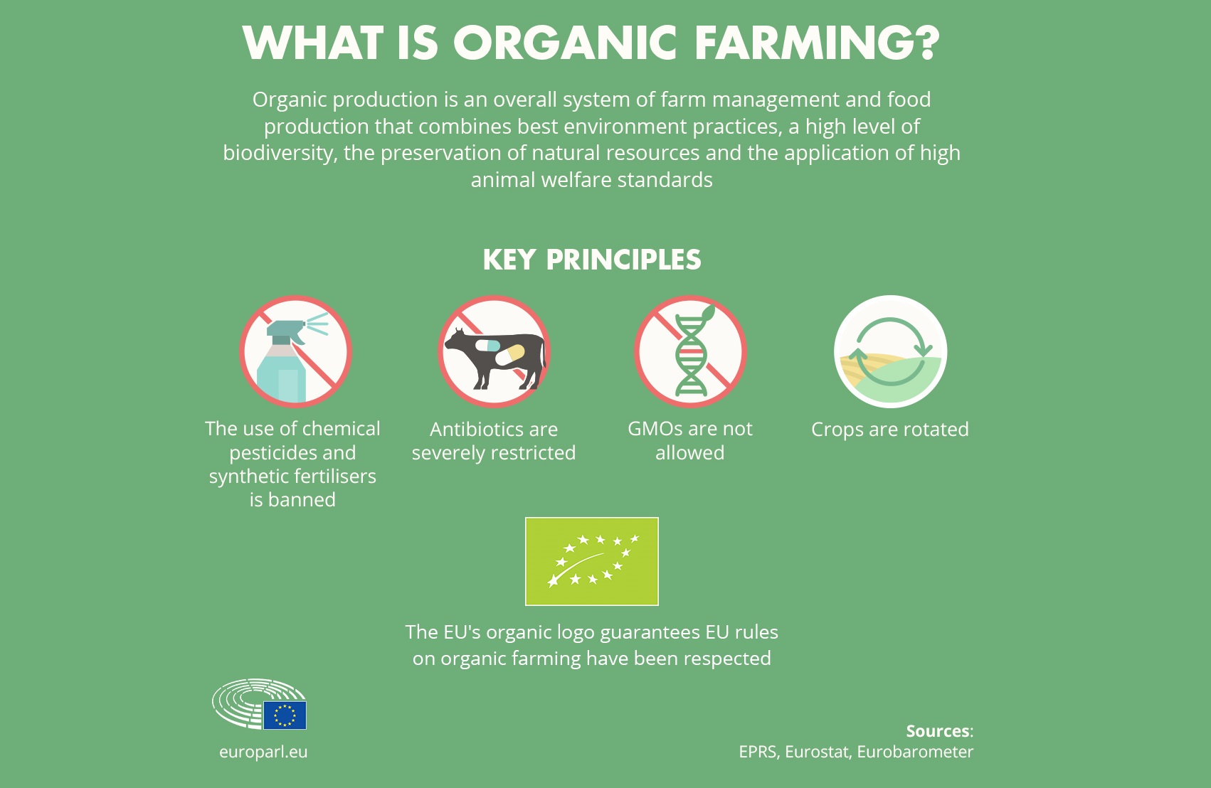 Các tiêu chuẩn này đảm bảo từ “hữu cơ” có ý nghĩa đồng nhất cho cả người tiêu dùng và nhà sản xuất trong EU. Các quy định liên quan tới nông sản hữu cơ được phát triển cùng với các quốc gia thành viên và sự hỗ trợ của hội đồng tư vấn và kĩ thuật và các tổ chức chuyên môn.