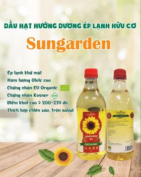 Dầu hướng dương ép lạnh hữu cơ Sungarden là sự lựa chọn an toàn số 1 cho sức khỏe. Đây là loại dầu không sử dụng nhiệt độ, giữ lại được những chất dinh dưỡng vốn có tốt nhất của hạt hướng dương. Loại dầu này cũng là một trong số ít các sản phẩm có điểm khói cao, nên có thể sử dụng để chiên, xào cực an toàn. Dùng trộn salad,thậm chí có thể sử dụng để chế biến đồ ăn cho bé đều rất phù hợp.