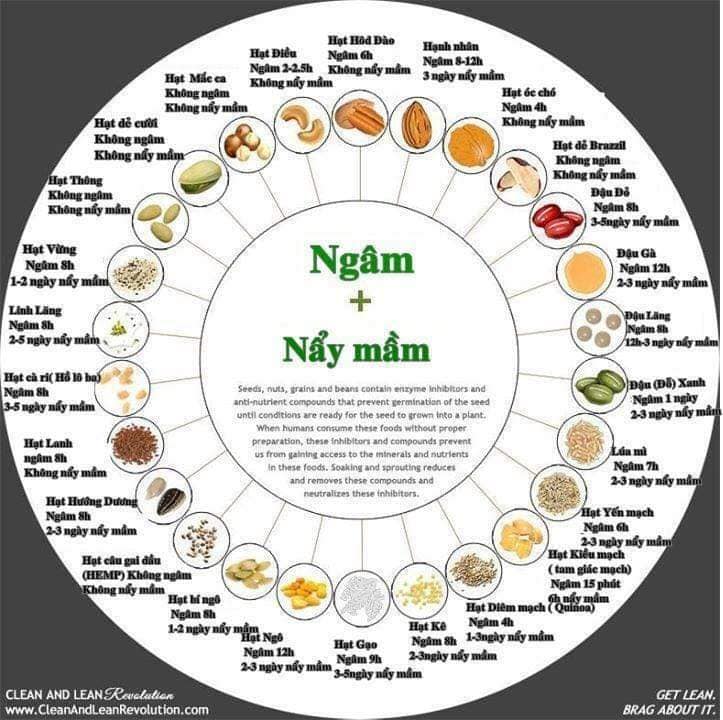 Bảng ngâm các loại hạt theo ảnh.