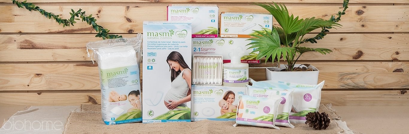 Và cuối cùng là dòng sản phẩm rất rất thiết thực cho các chị em phụ nữ : Masmi- sản phẩm chăm sóc vệ sinh phụ nữ hữu cơ. Sản phẩm chứng nhận organic&natural nhập khẩu từ EU: Băng vệ sinh hữu cơ Masmi; Dung dịch vệ sinh phụ nữ Masmi; Cốc nguyệt san Masmi; Tampons