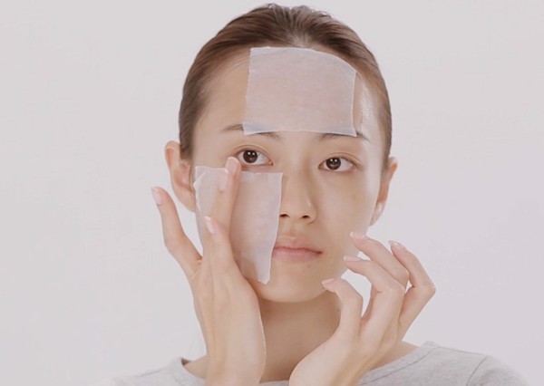 - Kéo dãn bông tẩy trang và đắp lên các vùng cằm, 2 má và trán trong thời gian 3-5 phút rồi gỡ xuống.