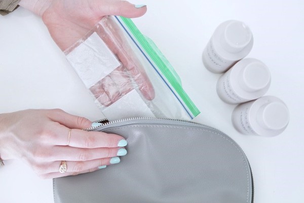 Thay vì phải mang cả lọ toner hoặc nước hoa lỉnh kỉnh bên người, thãy thấm bông tẩy trang với toner và cho chúng vào túi zip . Khi cần dùng chỉ cần cho ra là được. Vừa tiện lợi mà lại gọn gàng.