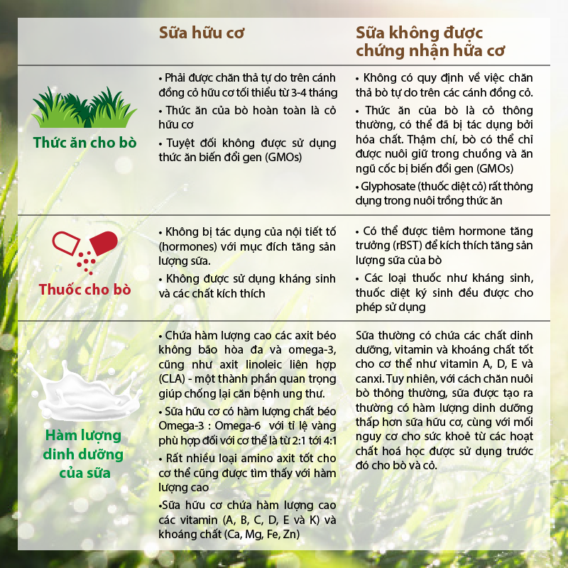 Vậy đâu là sự khác nhau giữa sữa hữu cơ và sữa thường?